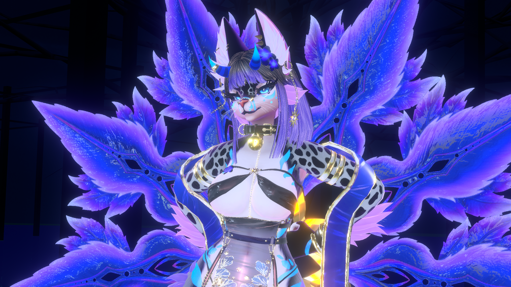 - Body Colourways; Body Hue, Body Saturation, Body Hue for the Undercoat, Body Emission Hue, Body Emission Strength, Option to make the spots on Soleil White, Eye Hue